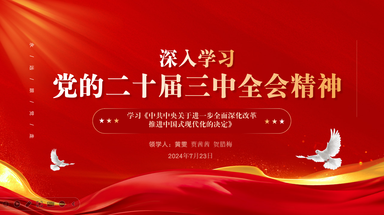 支部党员一致认为,党的二十届三中全会全面贯彻习近平新时代中国特色社会主义思想,重点研究进一步全面深化改革、推进中国式现代化问题,彰显了以习近平同志为核心的党中央将改革进行到底的坚强决心和强烈使命担当,是对新时代新征程举什么旗、走什么路的再宣示,对以中国式现代化全面推进强国建设、民族复兴伟业具有重大而深远的意义。