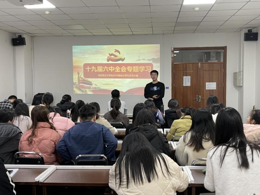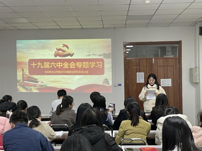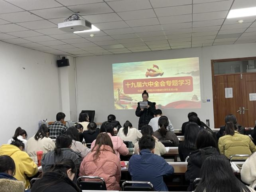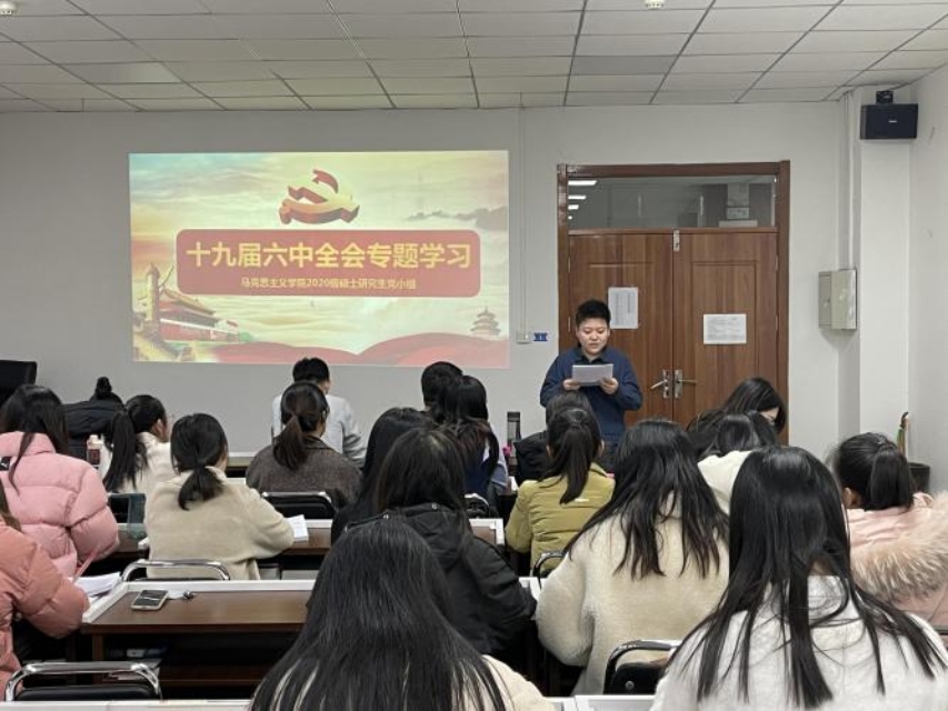 风雨百年砥柱人间,以史为鉴开创未来。为全面学习贯彻党的十九届六中全会精神,深入开展党史学习教育,引导广大党员同志增强政治自觉、坚定历史自信,11月30日,BG大游集团官方网站2020级研究生党小组在公司教室一开展党的十九届六中全会专题学习会。全体党员和入党积极分子参加学习,会议由党小组组长武泽馨主持。