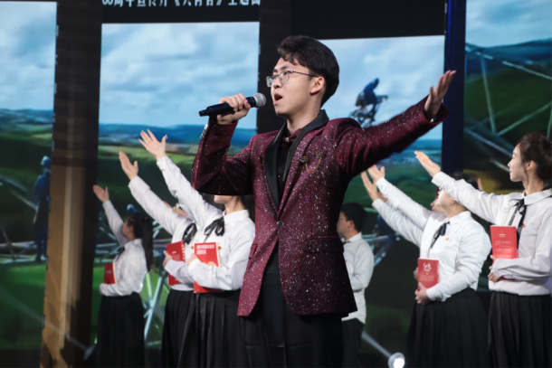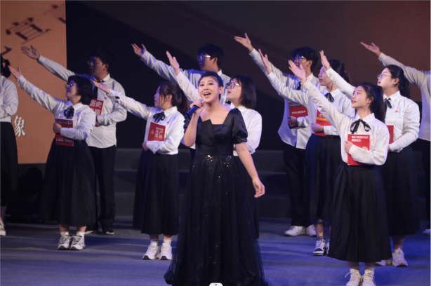 合唱节目《有我》以“百年青春,从未老去,归来仍是翩翩少年”为题,展现了共青团建团百年以来祖国逐渐繁荣强盛的壮美画卷,歌曲铿锵有力,旋律悠扬。同学们在百花奖的舞台上伴歌伴舞,充分展示自我,体现了公司学子热情洋溢、昂扬向上的青春活力,赢得了观众们的阵阵掌声。