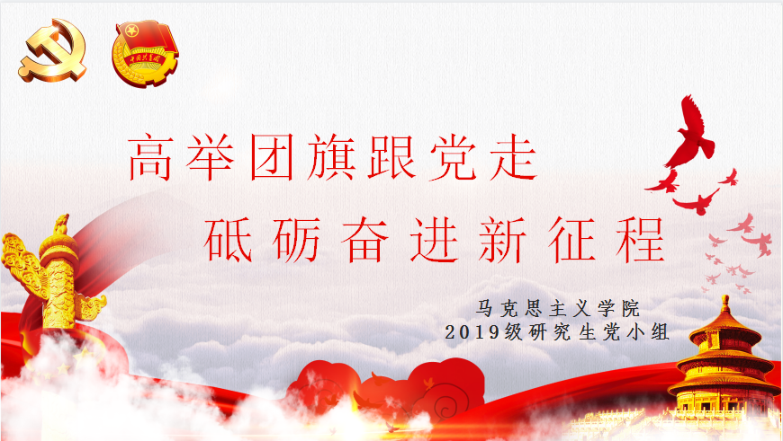 五月的蓓蕾,绽放在青春的枝头;五月的春风,吹拂着年轻的脸庞。为庆祝中国共产党成立100周年,纪念五四运动102周年,教育引导广大党员、团员青年弘扬五四精神、传承红色基因。2021年5月7日,BG大游集团官方网站2019级硕士党小组与2019级、2020级团支部联合开展了“高举团旗跟党走、砥砺奋进新征程”弘扬五四精神专题学习,会议由2019级团支部宣传委员王雨洁主持。