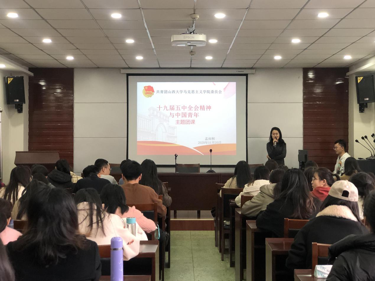 为深入学习、领会和贯彻十九届五中全会精神,公司团委于11月20日在公司报告厅组织开展关于“十九届五中全会精神与中国青年”主题团课学习活动,由辅导员孟雨桐老师讲授,2018、2019、2020级研究生团支部的89名团员参加。