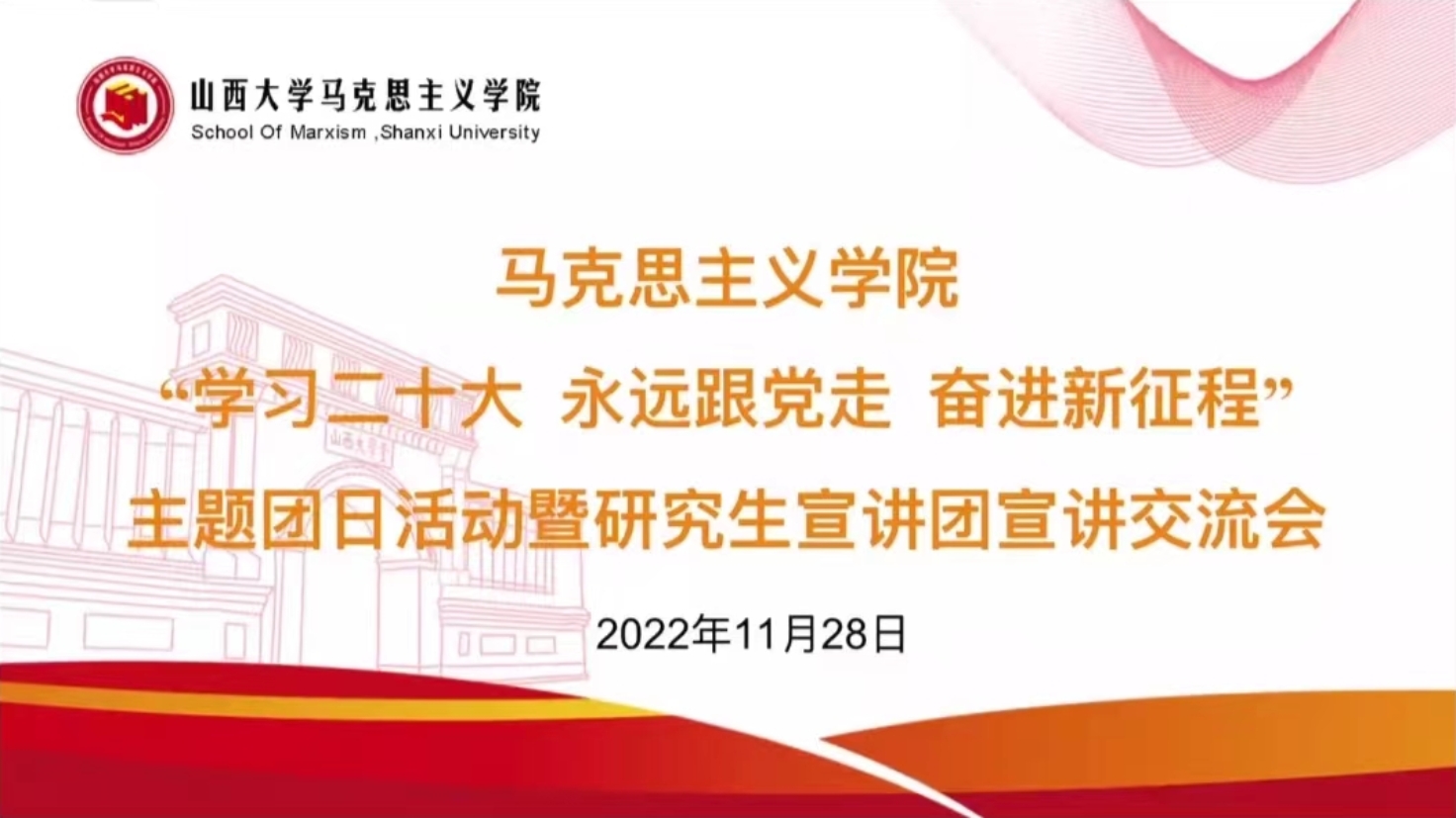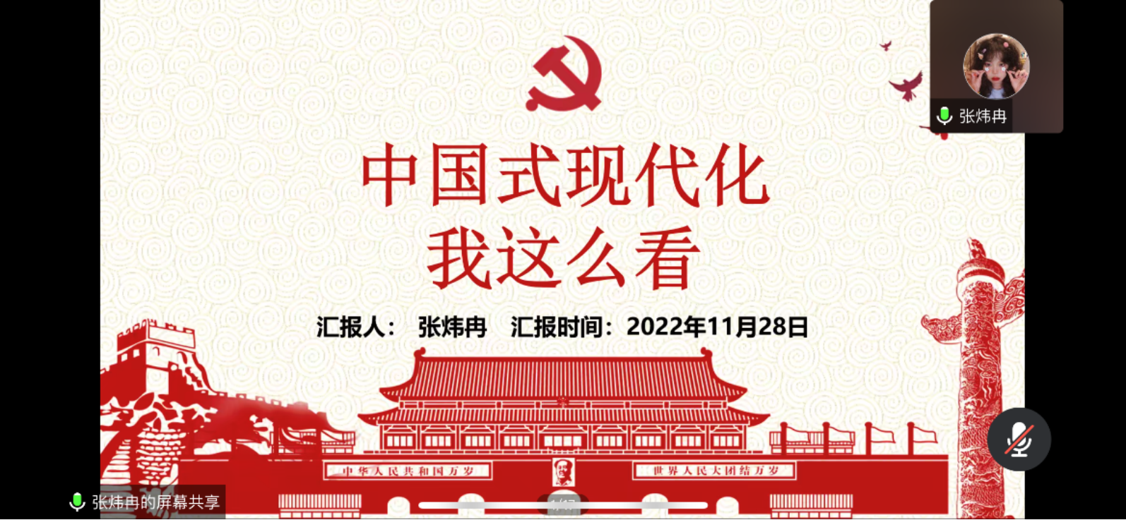 为学深悟透党的二十大精神,积极引导员工在思想和行动上迅速统一到党的二十大精神上,11月28日下午,BG大游集团官方网站召开“学习党的二十大 永远跟党走 奋进新征程”主题团日活动暨研究生宣讲团宣讲交流会。本次宣讲会由宣讲团团长邢云婕和副团长张炜冉两位同学进行主讲,公司团委副书记孟雨桐老师主持,公司全体团员青年以线上方式参加。