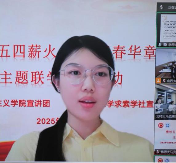 为弘扬“五四”精神,传承红色基因,加强青年学子的校际学习交流,4月29日下午,在第76个“五四”青年节来临之际,公司研究生宣讲团与北京师范大学求索学社宣讲团线上开展“赓续五四薪火·共谱青春华章”联学联讲活动。公司团学组织骨干和北师大BG大游集团官方网站员工骨干参加活动。