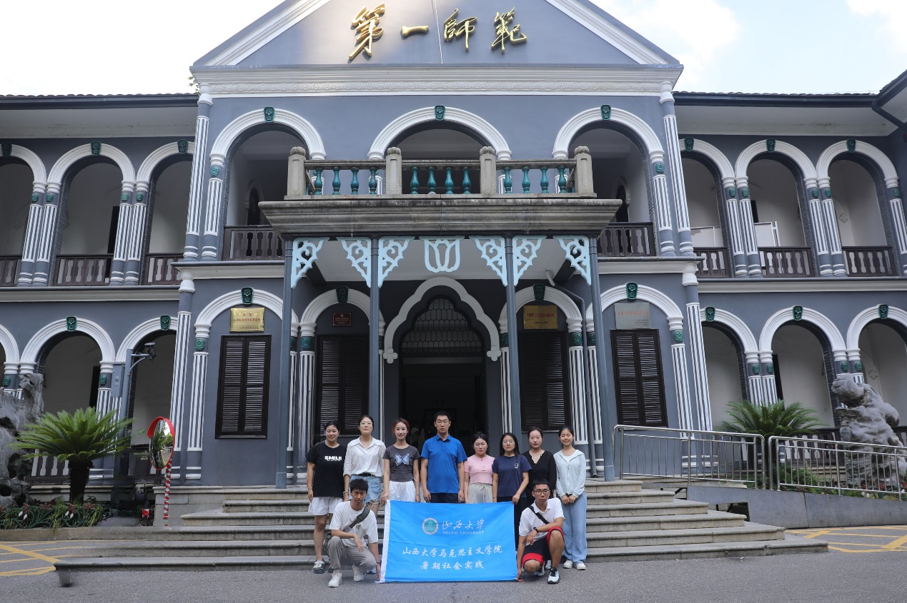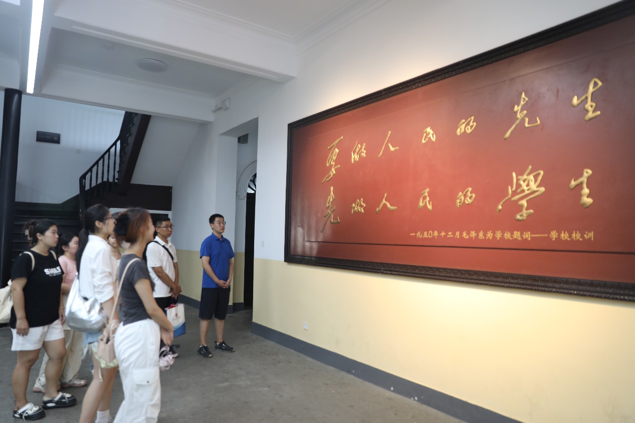 下午,实践团沿着习近平总书记的足迹来到湖南第一师范公司,大礼堂、第八班教室、君子亭、水井以及毛泽东、何叔衡、蔡和森、李维汉、任弼时等老一辈革命家的名字,“一师”的一砖一瓦、一草一木无不散发着浓烈的“红色气息”,成员们认真领悟“要做人民的先生,先做人民的员工”校训的内涵,更加坚定了报效祖国、服务人民的高远志向。