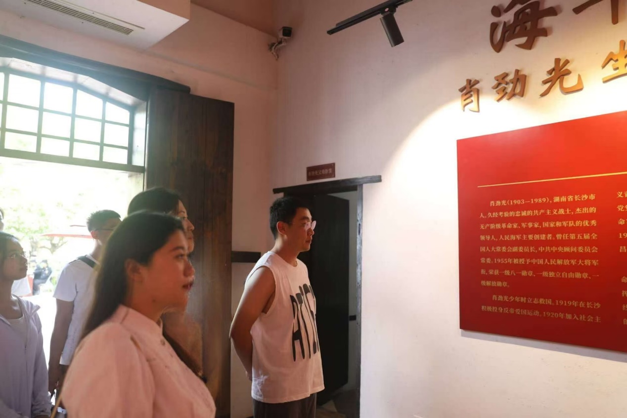 下午,实践团成员踏访肖劲光故居,通过观看肖劲光同志生前实物、图片和文献资料,成员们近距离触摸肖劲光大将的革命轨迹,学习了他为中国革命和人民海军事业百折不挠、鞠躬尽瘁的一生,深刻体会到老一辈革命家初心如磐、笃行致远的崇高风范和敢于斗争、勇于担当的奋斗品质。