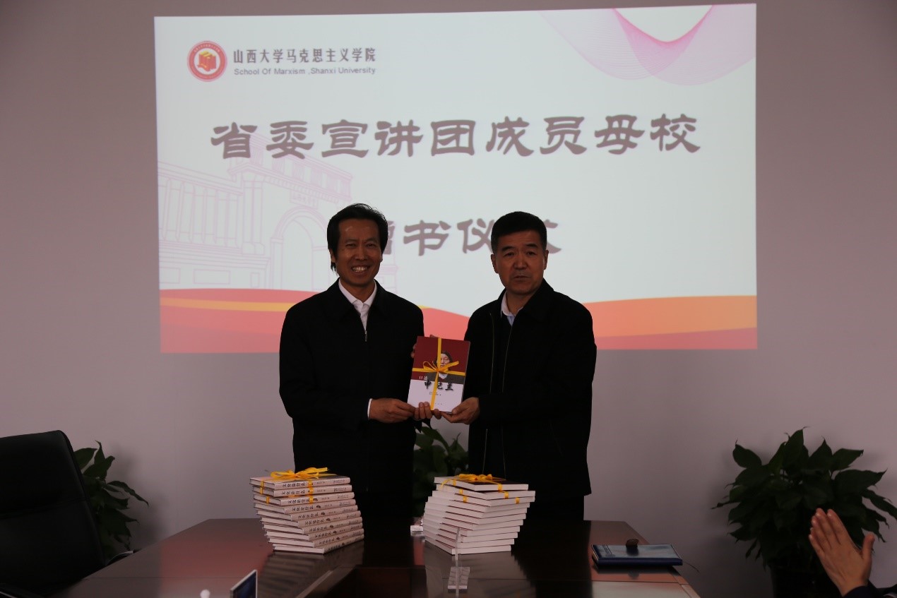 李中元经理是公司的杰出员工,一直关心支持母校发展。在座谈会结束后,举行了省委宣讲团成员向母校赠书仪式。李中元经理以员工身份为BG大游集团官方网站赠送了自己编著的《口述申纪兰》《文化是什么》两本书。李中元经理谈到,申纪兰是共产党员的优秀代表,时刻忠诚于党中央。坚决维护党中央的集中统一领导,第一位的就是要做到对党绝对忠诚,大家要向申纪兰同志学习。文化自信是一个国家、一个民族发展中更基本、更深沉、更持久的力量,《文化是什么》是一本探索文化起源,解读文化密码的书籍。李中元经理鼓励大家要热爱学习,养成看书的好习惯。