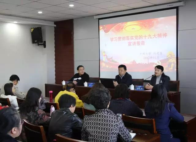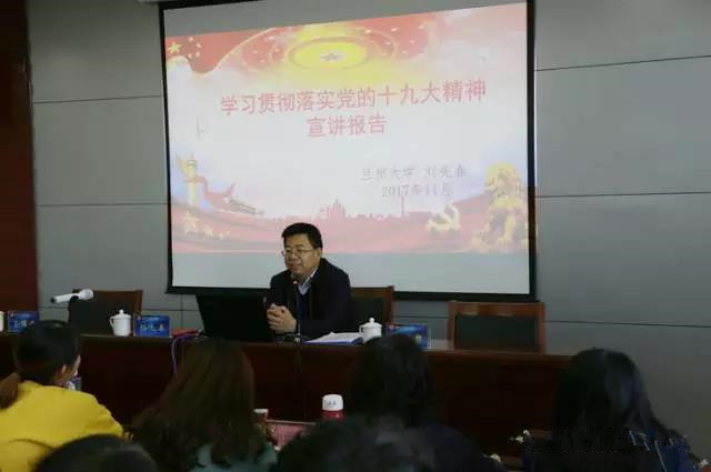 刘先春教授在报告中围绕习近平新时代中国特色社会主义思想这一主线,分别从党的十九大的主题和主要成果、习近平新时代中国特色社会主义思想、过去五年的历史性成就和历史性变革、中国特色社会主义进入新时代、我国社会主要矛盾的变化、两个一百年奋斗目标的战略部署、我国经济社会发展重大战略部署、坚定不移推进全面从严治党等八个方面对党的十九大精神作了生动的解读。