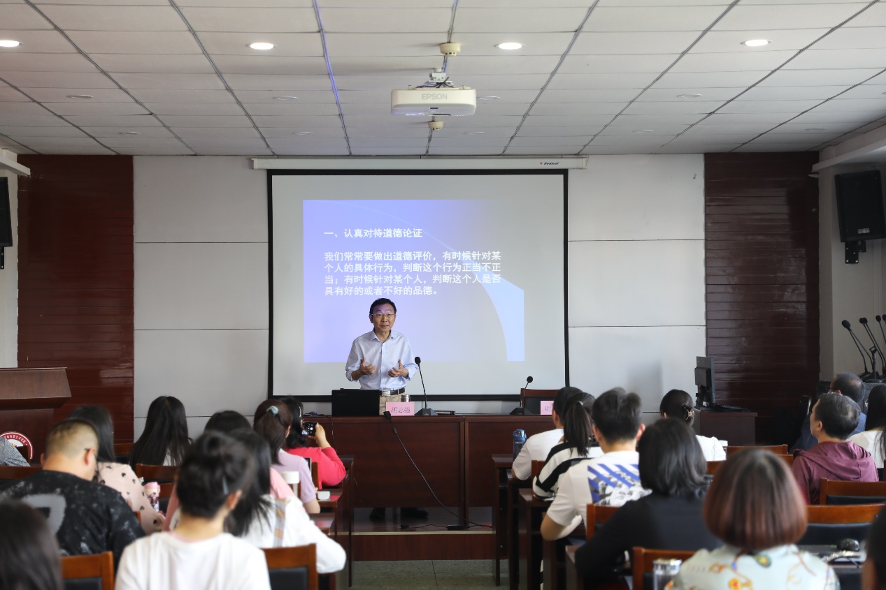 胡志强从道德论证的重要性、道德论证的要求和基本框架、道德论证的复杂性以及提高道德论证的能力四个方面层层递进,为师生们系统深入地讲授了道德论证的主要问题。他首先指出,道德评价作为一种实践判断具有改变人们生活的力量,同时强调了在道德评价中持有说理的态度和能力的重要性。其次在道德论证的要求上,胡志强认为,好的道德论证在满足概念清晰、结构明确、逻辑一致等一般要求的同时,其前提需要包括事实命题与道德原则这两类命题,并通过实例向师生们讲授了如若两类命题缺一则无法做出合理的道德判断。接着他用丰富的社会道德实践案例,生动地展现了一些常见的道德原则以及不同道德原则对于道德判断的影响,引发师生们热烈讨论。最后,他通过当前社会热议的话题,向师生们诠释了提高自身道德论证能力的重要性。师生们纷纷表示,胡志强教授的讲座内容丰富、观点新颖、论证精邃、引人深思,开拓了大家的学术视野。