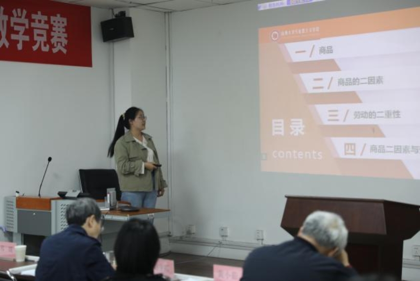 各位评委就参赛选手的整体表现进行点评,提出了具有针对性的意见和建议。黄小茹教授对思政课立德树人根本任务有着更深层次的理解,她认为员工的“抬头率”是首要的,注意力是宝贵的,员工的认知理解与兴趣对教师的授课技巧与方式有着巨大的考验;赵宇霞教授认为青年教师要树立对象意识,讲课内容要适当拓展,理论研究要进一步深化,强调青年教师要注重自身基本功的训练,做到“理直气壮”讲好思政课;梅建军教授指出竞赛教学与日常教学之间的差异,强调完整的教学环节对于竞赛教学的重要性;冯留建和张云飞教授对各位选手竞赛时所展现出的扎实的学科知识、熟练的课堂驾驭能力和出色的教学水平给予了充分肯定。