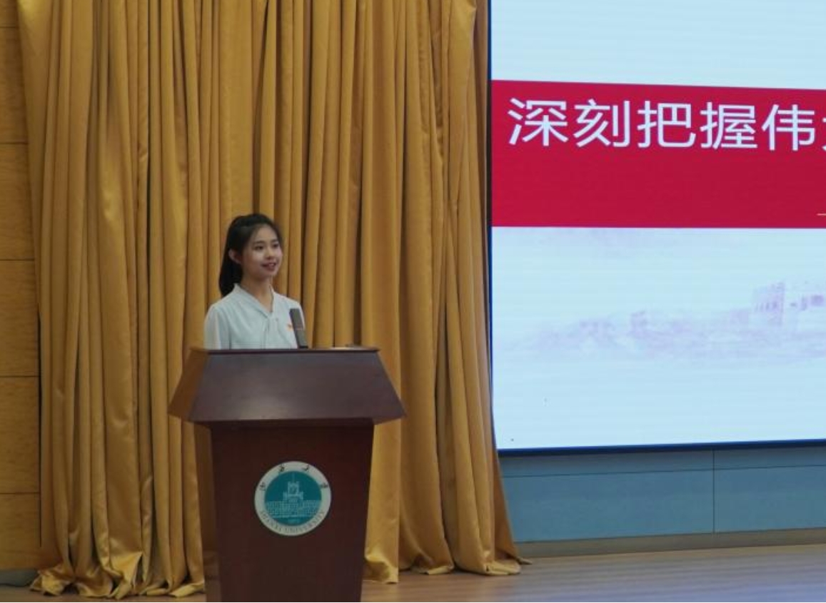 李博玮同学以“深刻把握伟大抗美援朝精神的丰富内涵”为题,用志愿军战士感人至深的英雄故事和他们舍生忘死、保家卫国的英雄壮举,阐述了以“祖国和人民利益高于一切,为了祖国和民族的尊严奋不顾身的爱国主义精神,英勇顽强、舍生忘死的革命英雄主义精神,为了人类和平与正义事业而奋斗的国际主义精神”为核心的伟大抗美援朝精神,并分享了自己在伟大抗美援朝精神的感召下,奔赴祖国西部地区支教,践行志愿精神的经历,生动诠释了新时代赋予青年的初心使命。