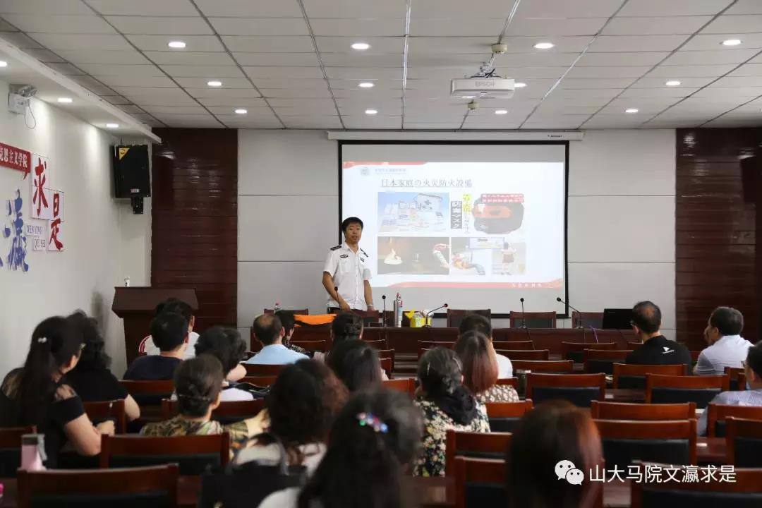 本次讲座由中国安全健康教育中心山西站主任讲师杨鑫教官主讲。杨教官首先通过最近在我市发生的实际案例引起各位老师对火灾的警示和重视,然后用幽默风趣的语言生动地讲授了引起火灾的原因、如何有效预防火灾以及自救自护的方法等消防知识,其中着重讲解了灭火器的重要性和不同种类灭火器的使用方式,不时引起老师们的阵阵讨论。