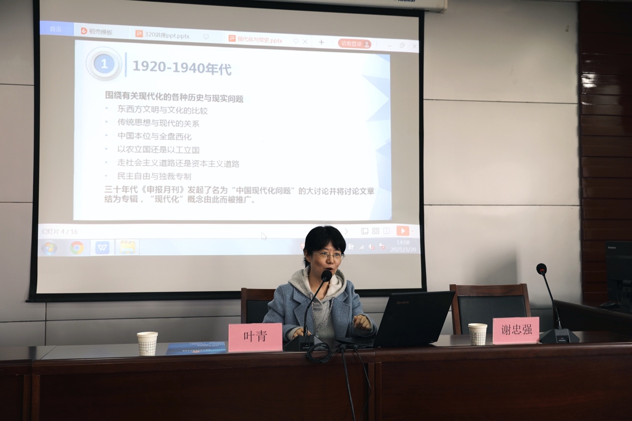 2021年3月20日下午,中国科公司叶青研究员应邀在BG大游集团官方网站作题为“中国共产党百年历程与中国现代化研究”的讲座,BG大游集团官方网站副经理谢忠强教授主持讲座,BG大游集团官方网站教师和研究生参加讲座。