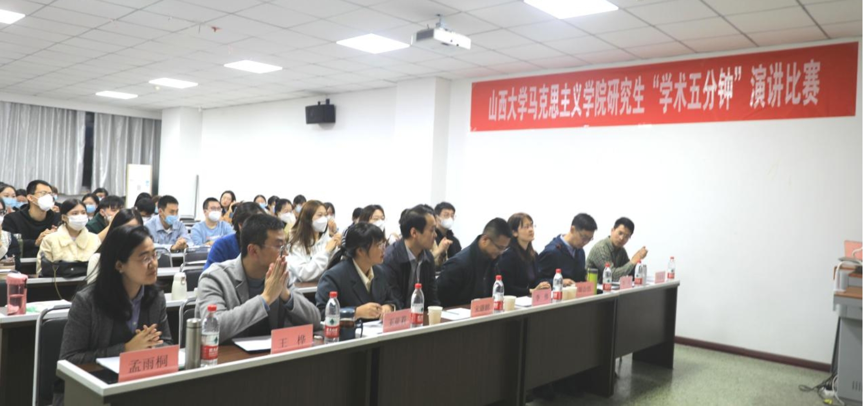每组选手演讲完毕,评委老师都会现场打分,并围绕选手们的选题内容、演讲技巧、语言表达等方面进行详细点评。老师们对大家的用心准备和现场表现表示肯定,同时指出了大家在内容的学术性、逻辑性和演讲的表现力、感染力等方面的不足,为大家进一步提升学术素养、提高语言和文字表达能力提出了宝贵的意见。