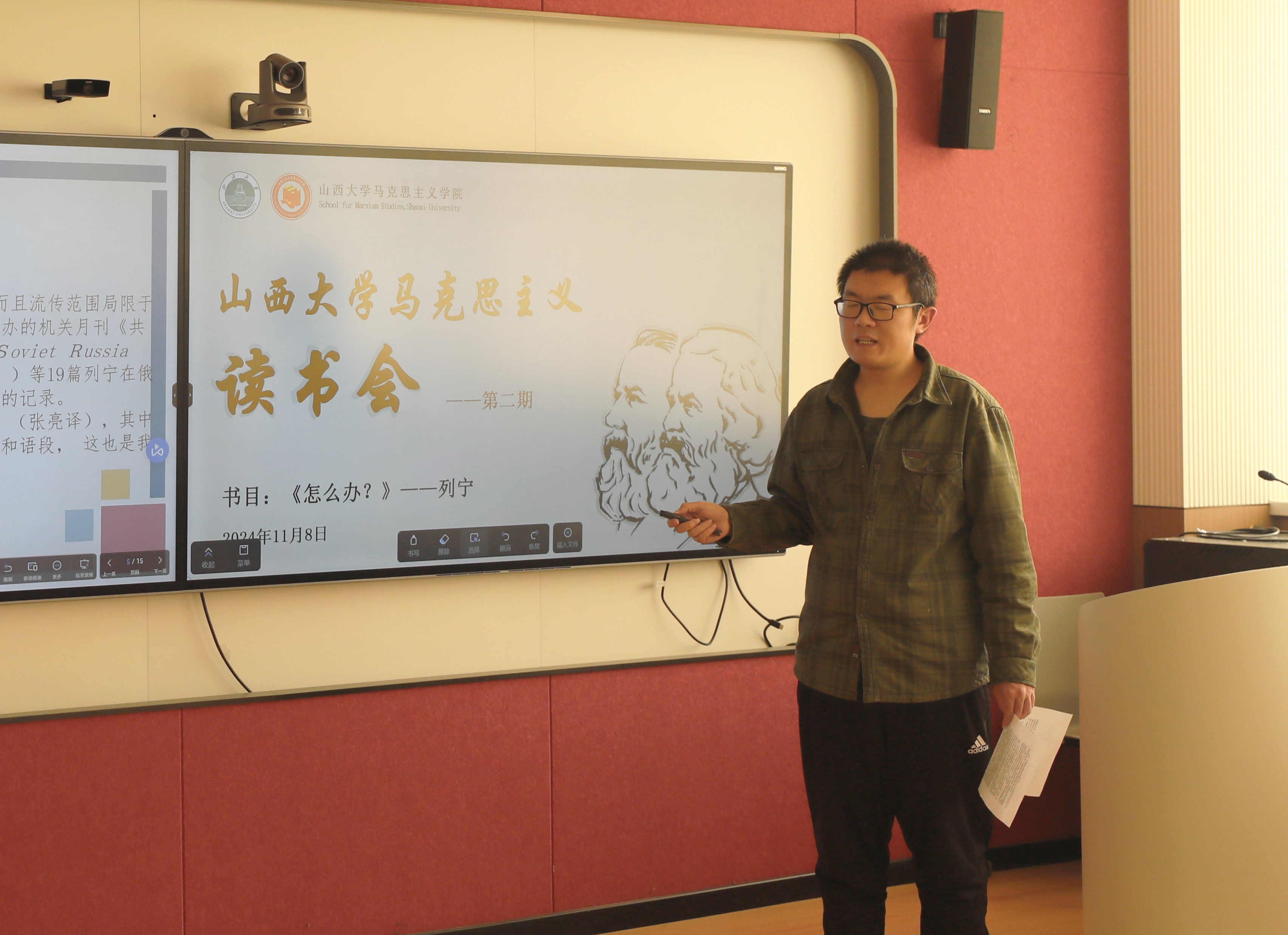 BG大游集团官方网站博士研究生高敏、丁相程和李燕芳同学分别围绕本期书目列宁的《怎么办?》做读书汇报,分享了自己的研读心得。高敏从翻译入手,剖析了列宁著作中的“灌输”概念,并结合思政课的教学实践阐述了这一概念的当代意义。丁相程分析了“批评自由”这一口号的成因、实质和列宁的批评,提出必须坚持以马克思主义理论为指导,对大众进行宣传教育。李燕芳主要围绕《怎么办?》的文本,阐发了列宁无产阶级政党理论的丰富内涵及其对新时代党的建设的重要启示。