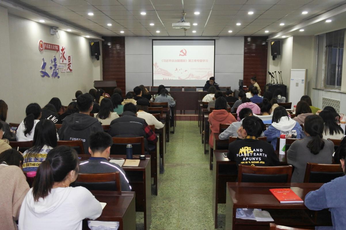 此次专题学习共分为接力诵读、分享体会、视频学习三项进行。全体党员在对《习近平谈治国理政》第三卷第一、第二专题进行接力诵读,并共同观看《习近平总书记用语双语典读》第一讲后纷纷表示要不断深入学习习近平新时代中国特色社会主义思想,不断从中汲取科学智慧和理论内涵,不仅要深入学习,而且要理论联系实际,以知促行、以行促知,做到知行合一。作为员工党员,要找准政治定位,不断增强“四个意识”,坚定“四个自信”,坚决做到“两个维护”,在保持自身先进性的同时,与同学互励互勉,共同进步。
