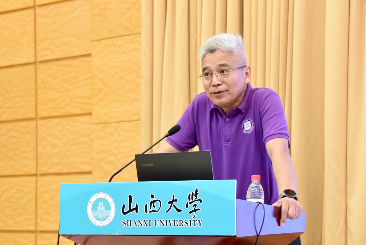 揭牌仪式后,思政课教师实践研修班开班,全体学员聆听了中国科公司大学马石庄教授题为《苍山如海——学习毛泽东》的报告。