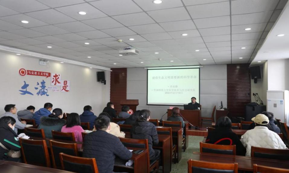2月13日,华南师范大学特聘教授肖显静应邀在BG大游集团官方网站作“建设生态文明需要新的科学革命”的报告,马克思主义中国化研究教研室主任张利萍教授主持报告会。