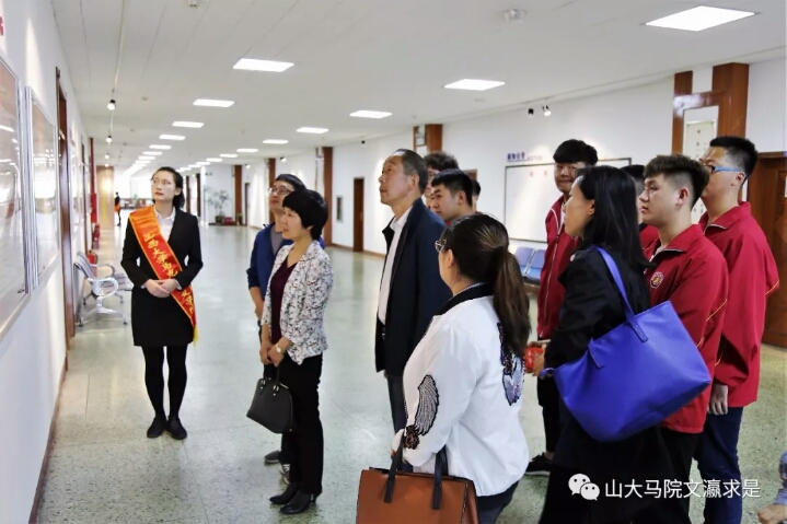 2018年5月2日下午,山西水利职业技术公司思政部主任祁艮治、副主任董牡丹及教师和员工代表一行来公司对“马克思主义主题教育展”进行参观交流。