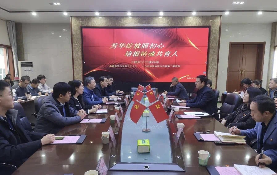 公司党委副书记、经理任定成围绕团队队伍、学科发展、教学科研、人才培养、社会服务等方面介绍了公司近年来在党建引领下取得的重要成绩,希望双方坚持以党建为引领,以基层组织共建为纽带,建立长效沟通交流机制,在山西红色文化、传统文化、先进文化的研究阐释、大中小学思政课一体化建设以及数智思政实验室共建等方面深入开展合作,共同推动马克思主义理论研究和思想政治教育与测绘地理信息事业的融合发展。