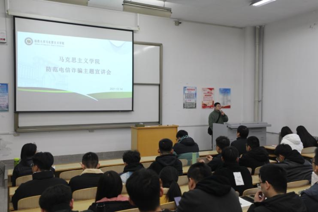 最后,宋璐鹏副书记对本次主题宣讲会进行了总结,他要求同学们要在思想上对电信诈骗引起高度重视,不能充当旁观者,要提高警惕,谨慎交友,拒绝贪便宜心理,遇到可疑的人或事要积极向老师和同学寻求帮助,真正把防范意识渗透到自己的日常学习和生活中。同学们纷纷表示,一定要筑牢防范电信诈骗的篱笆,防微杜渐,不给犯罪分子以可乘之机。
