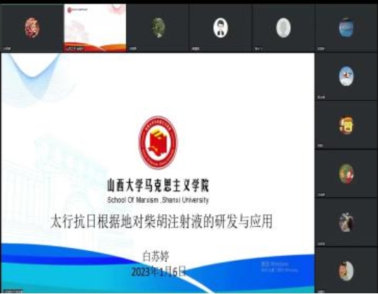 中国近现代史基本问题研究教研室讲师白苏婷在《太行抗日根据地对柴胡注射液的研发与应用》的报告中,梳理了太行抗日根据地对柴胡注射液的研发过程,阐释了柴胡注射液对保障持久战运转的重要战略意义。胡英泽教授和张云飞教授从革命史、科技史和医学社会史三个视角论述了该选题的历史意义和进一步研究的可能性,指出未来研究中可加强理论的提升和内容的精炼。