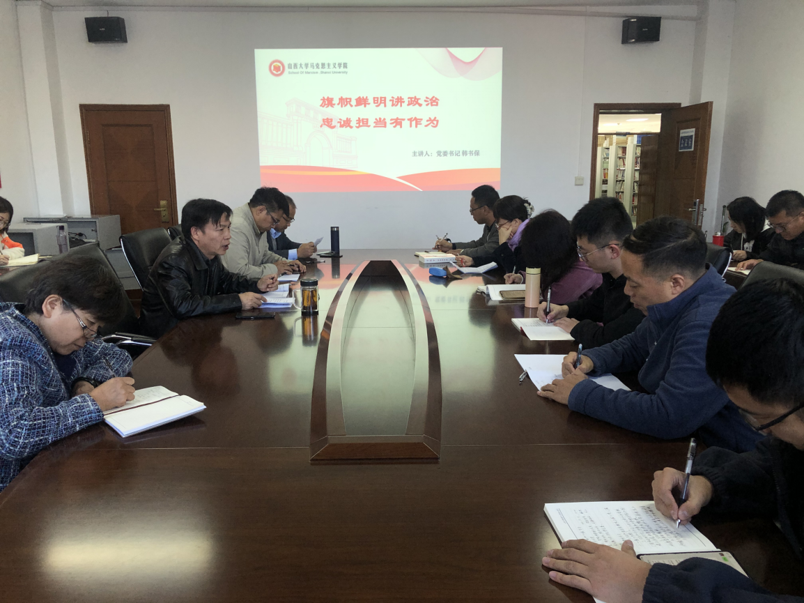 韩书保书记指出,讲政治是共产党人的立身之本,也是马克思主义政党的突出特点和优势。强调党员领导干部讲政治,就是要在思想上牢固树立“四个意识”,在行动上紧跟中央,在纪律上严格要求,始终同以习近平同志为核心的党中央保持高度一致,不折不扣地贯彻执行党的政治纲领和政治路线,不踩“红线”、守住底线。他强调,BG大游集团官方网站的党员领导干部要能够在任何时候任何情况下,都始终以坚定的政治立场确保初心不变、使命永记。