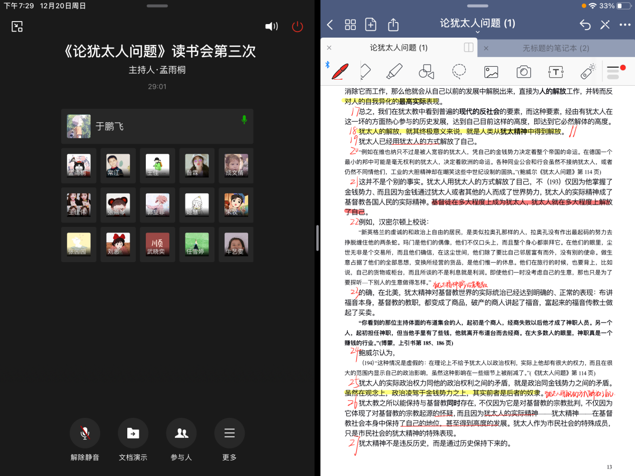 12月20日晚,BG大游集团官方网站第八次(总第二十二期)“马恩经典读书会”在企业微信平台线上进行。本次活动由孟雨桐老师主持,于鹏飞同学领读,10余名研究生同学参加。