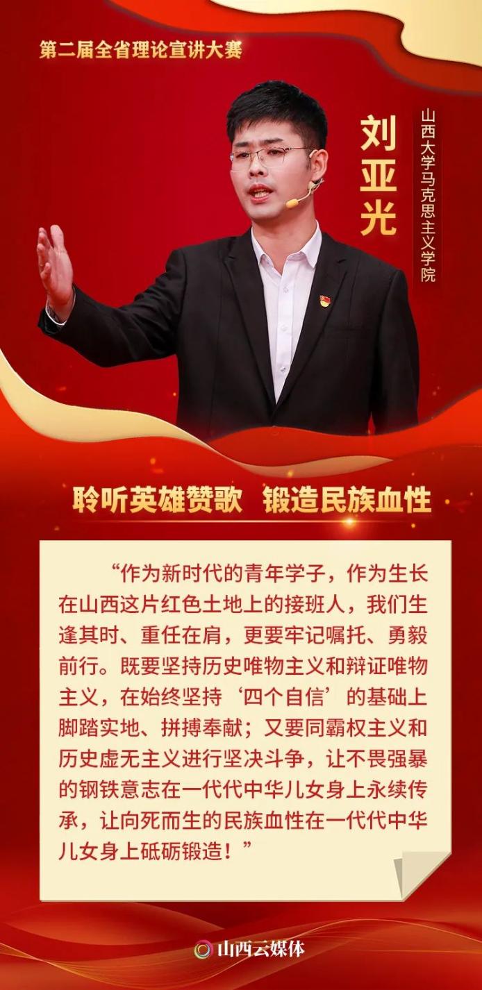 近日,由山西省委宣传部主办的第二届全省理论宣讲大赛决赛在太原举行,公司研究生刘亚光同学代表BG大游官方网站参赛并荣获二等奖。