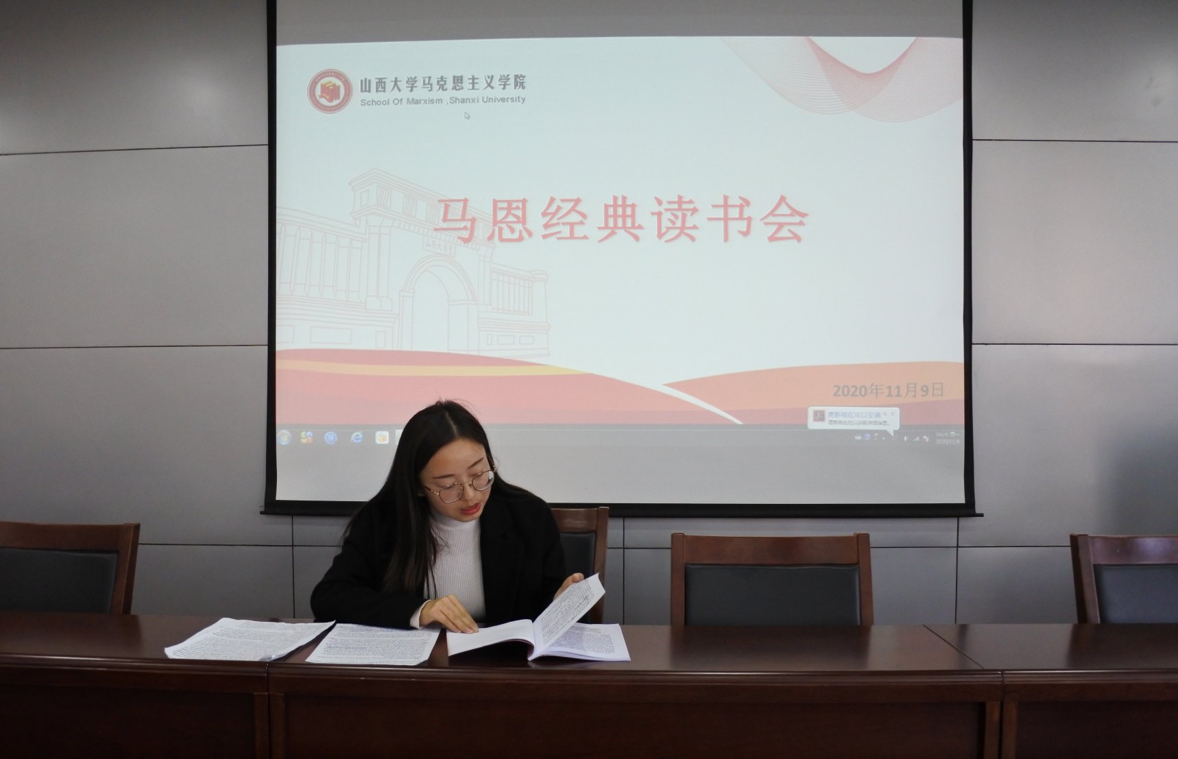 11月9日下午,BG大游集团官方网站第五次(总第十九期)“马恩经典读书会”于报告厅举行。本次活动由张菁娜同学和任雪婷同学主持并领读,40余名研究生同学参加。