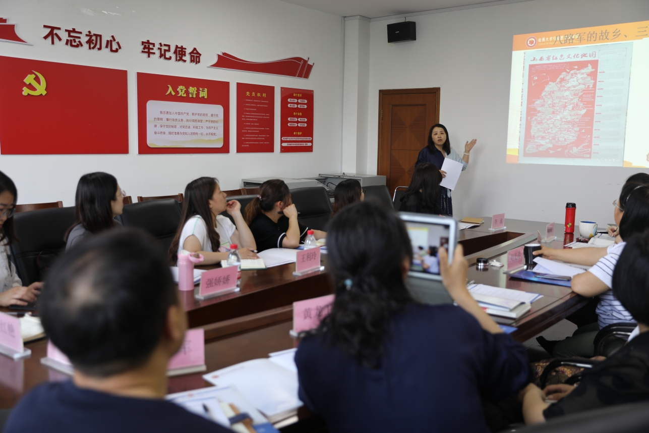 在副经理昝剑森教授的指导下,侯红霞副教授介绍了开展本次集体备课的目标及其意义。逯慧副教授作了“晋绥法律制度融入坚持中国特色社会主义法治道路研究”课题研究成果的汇报。段红艳副教授以“党史融入‘基础’课中国革命道德教育”为题作了备课分享。吕梁公司“基础”教研室陈爱爱、董贺副教授分别进行了交流发言。
