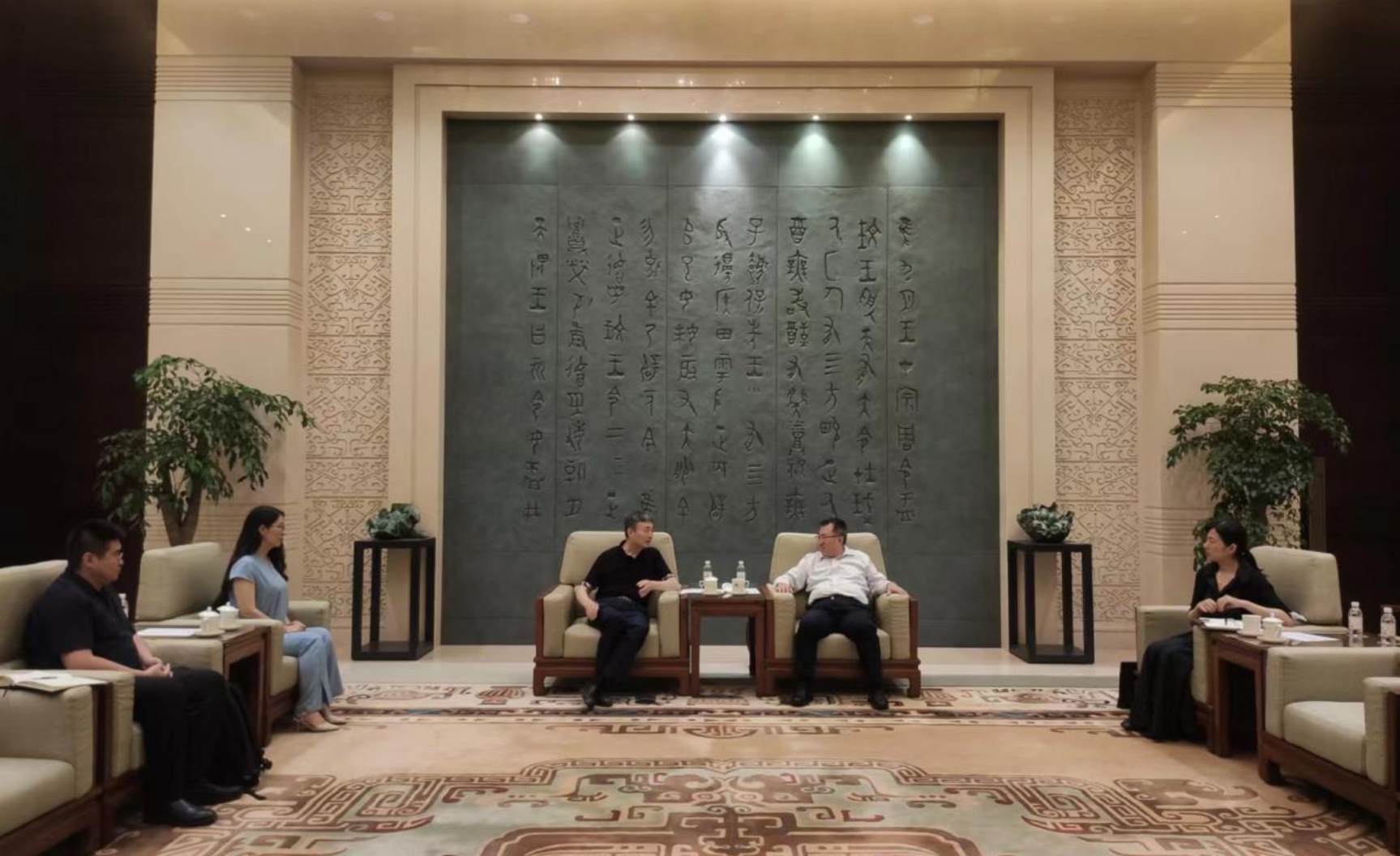 2023年6月25日,中国国家博物馆馆长王春法会见公司党委书记王利花和经理任定成一行。中国国家博物馆副馆长丁鹏勃参加会见。
